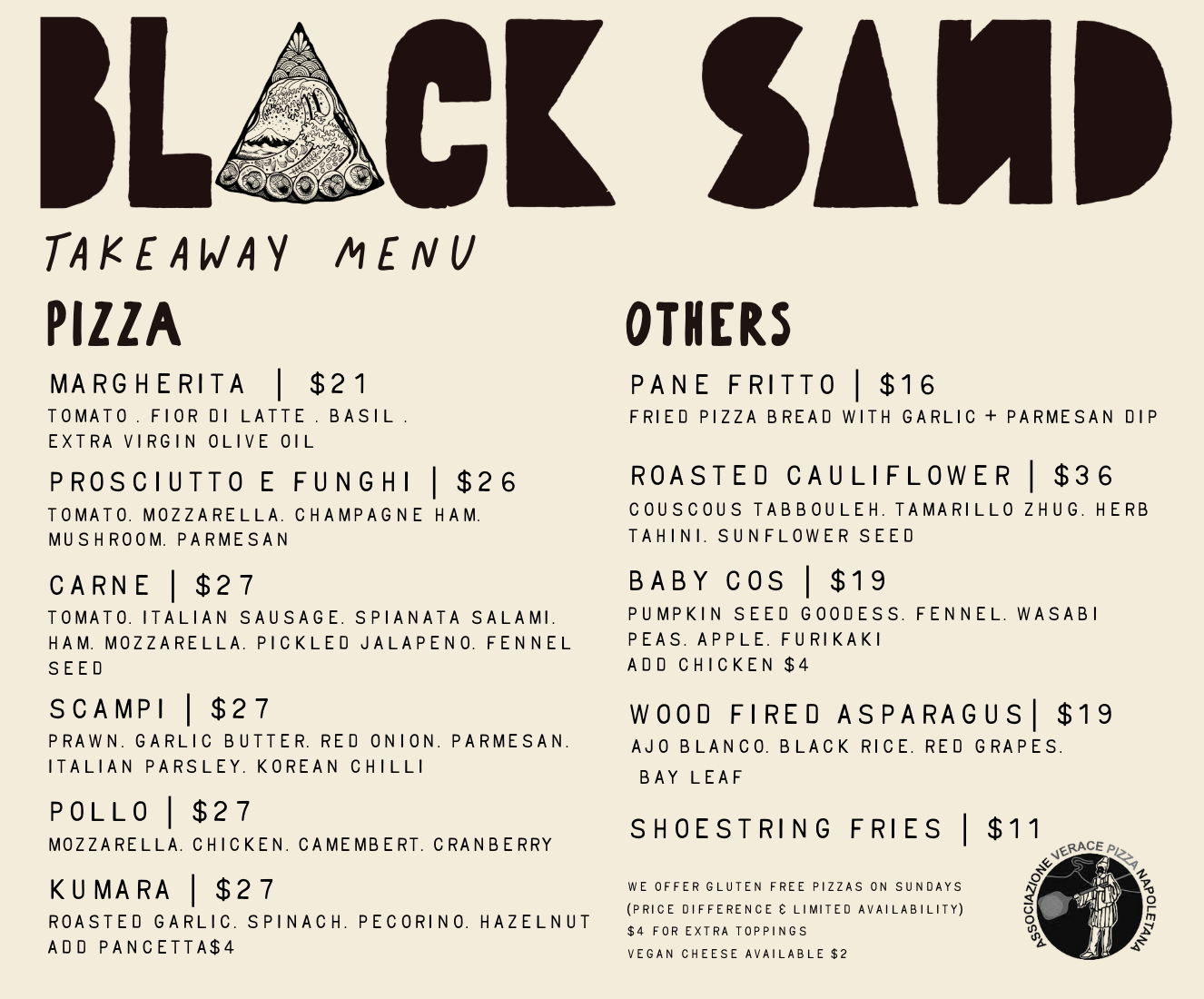 Black Sand Pizzeria and Bistro is nestled on the popular surf beach in Oakura, Taranaki, New Zealand. We proudly serve Authenticated Neapolitan Pizza combined with a fresh, seasonal and modern bistro menu in a welcoming neighbourhood vibe, ON THE BEACH!